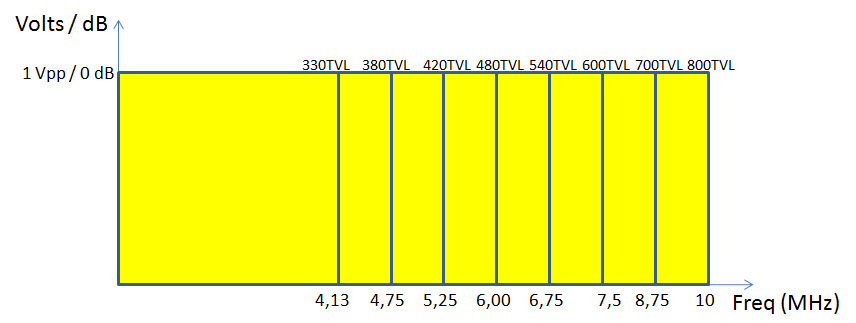 For instance, in the sixties, a television set had only 330 HTVL, occupying only 4.13 MHz of bandwidth; 420 HTVL cameras require 5.25 MHz ; 600 HTVL, 7.5 MHz and so on.
