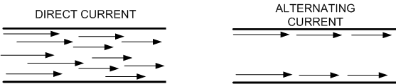 When submitted to a direct current, this current distribution is uniform across the cross section of the conductor. However, when the cable is submitted to an alternating current, there is a repulsion between the electromagnetic lines at the center of the conductor (for an alternating current, they constantly changes direction ), forcing them to the surface of the conductor.
