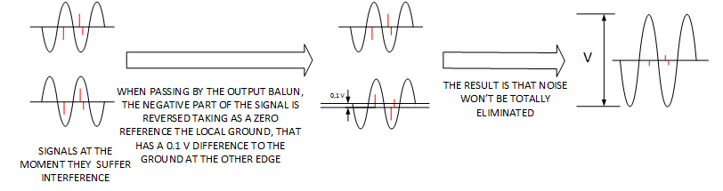 At the other end , when the signals are added again , it's taken as a reference ground the BNC connector of output balun .
