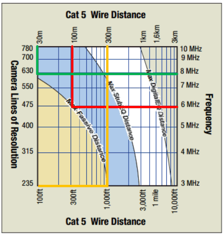 - In yellow, for a distance of 300 m, only 235 TV lines of resolution!