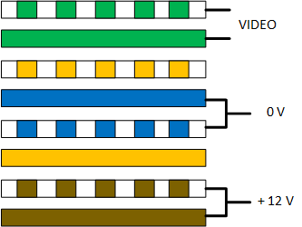 - Video signal is connected to the green pair ;