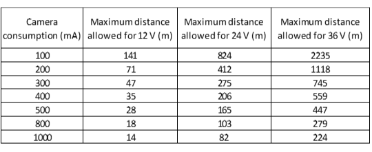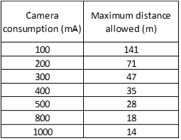 For a camera that consumes 300 mA as one with a 30 m IR, power can go only up to 47 m away.