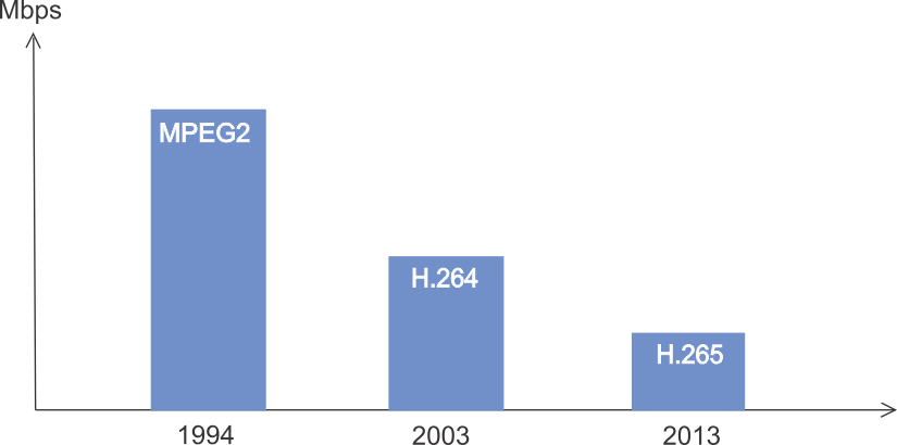 While H.264 can transfer HD images using a 1Mbps bandwidth, H.265 can transfer Full HD content using the same bandwidth.