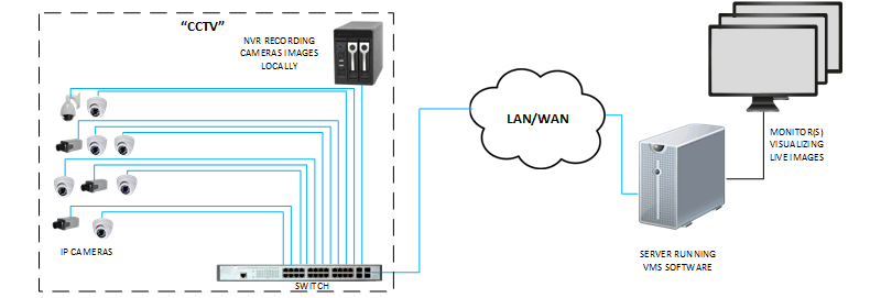 - At the central security, a VMS software concentrates images from all cameras;
