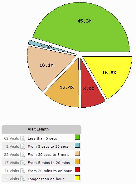 Chart below, which measures the stay on the site, it can be noted that 37.2 % of visitors stay more than five minutes on the site, and 16.8% stay for more than an hour :